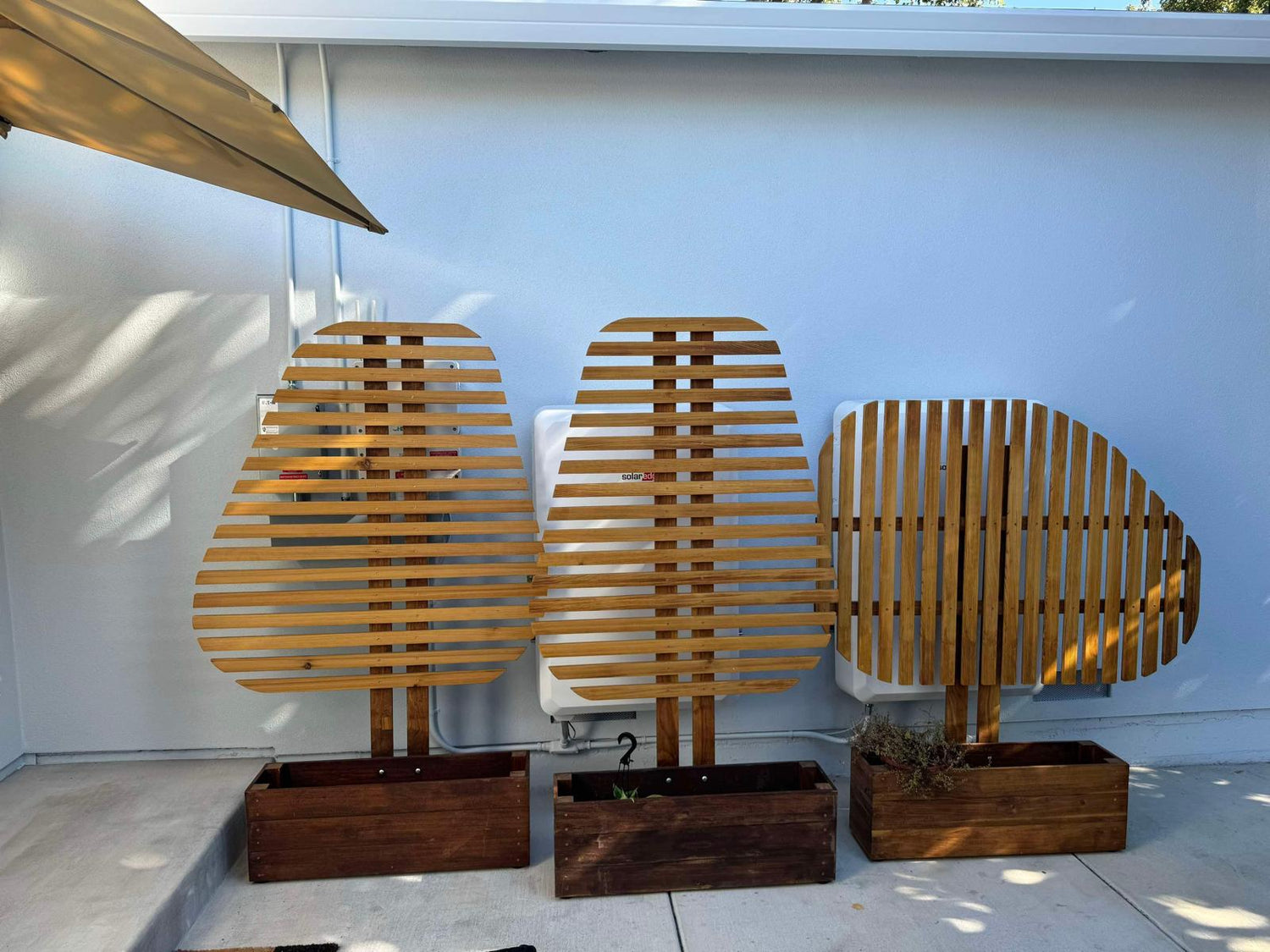I was commissioned to design three unique planters with a twist—each featuring a screen in the shape of a tree, intended to conceal unsightly solar batteries and electronics. The screens were crafted from slats of cedar wood, carefully arranged to mimic the delicate branches and canopy of a tree. The planter bases were constructed from rich walnut, adding a touch of elegance and earthiness. Each upright was also made of walnut, securing the cedar slats in place and creating a striking contrast between the dark, solid trunk and the light, airy appearance of the canopy. The result is a functional yet artistic piece that blends nature with modern design, transforming practical storage into a beautiful focal point.